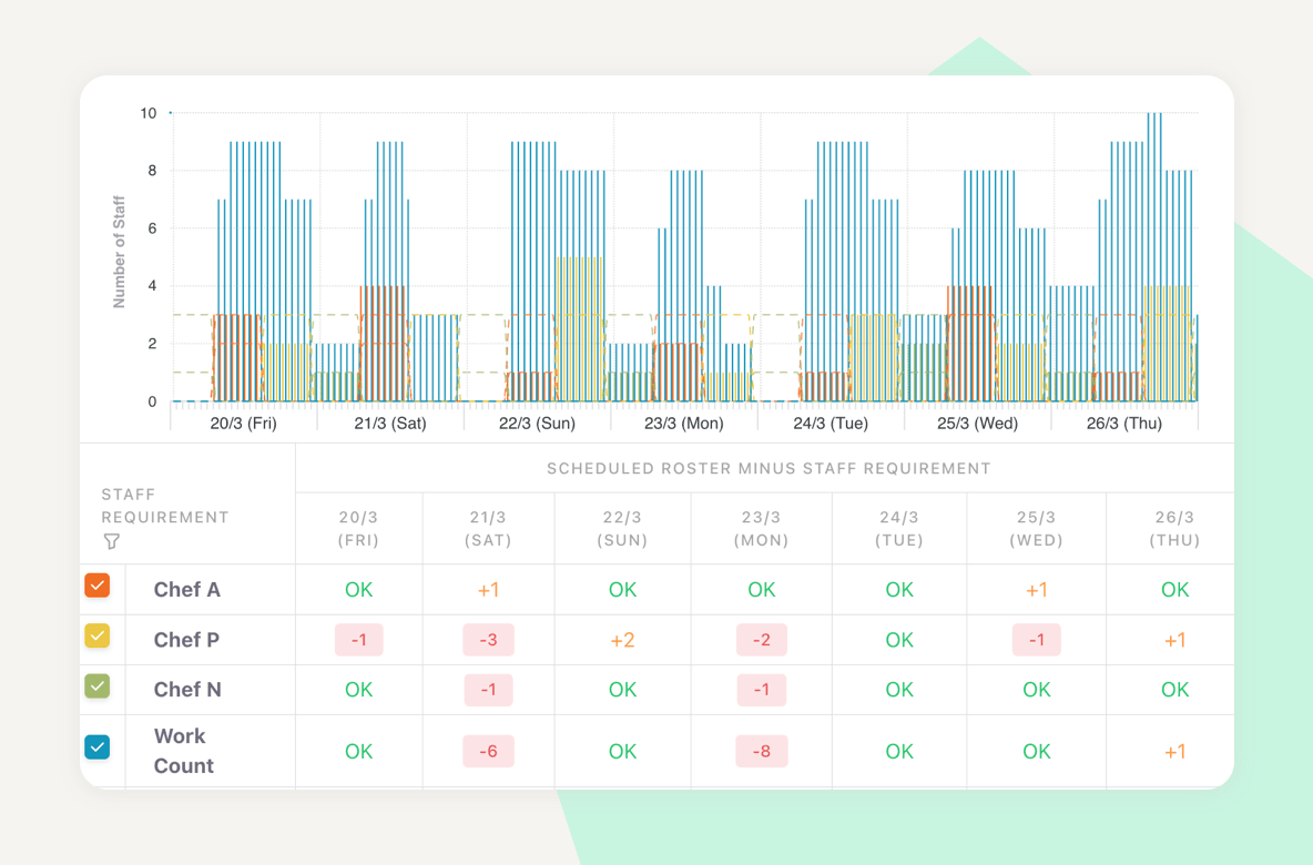 Monitor daily staffing requirements against live schedules to ensure you are never over or under-staffed.